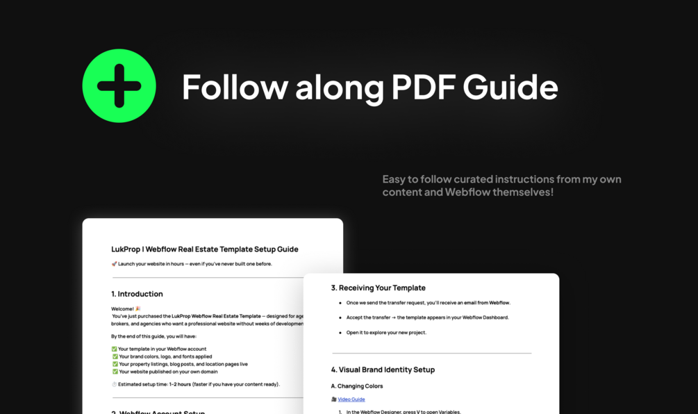 Webflow Real Estate Template + PDF Set-up Instruction Guide + Content Guide